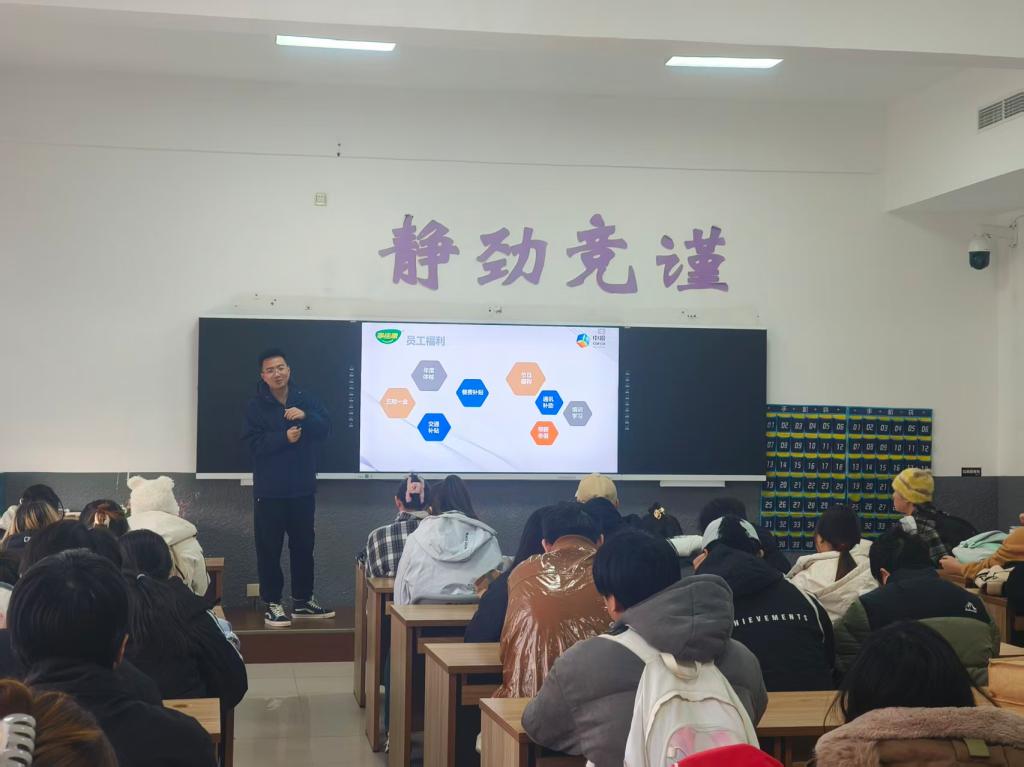 宣讲环节,企业招聘负责人详细介绍了公司发展历程、全产业链布局优势及人才培养体系,重点解读了各岗位的职责要求、任职标准与职业发展路径,通过播放生产基地实景视频、分享员工成长案例,让学生直观了解企业运营模式与工作场景。在互动答疑环节,同学们围绕岗位工作地点、薪资结构、管培生轮岗机制、技能培训等问题积极提问,企业代表逐一耐心解答,现场交流氛围热烈。