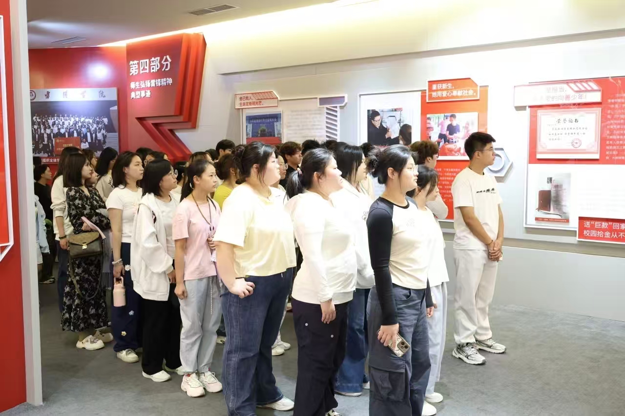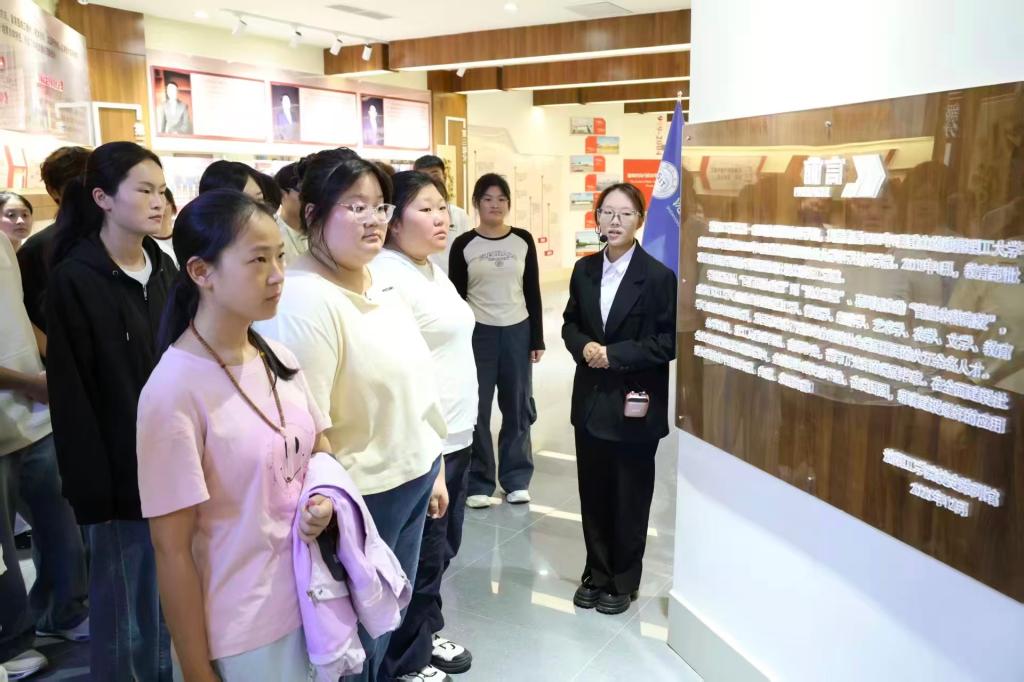 随后,讲解员引导同学们有序步入校史馆。馆内全面展示了学校的风雨兼程以及学校发展成就和优秀人物事迹,生动展现了学校自办学以来,在学科建设、人才培养、科研创新等领域取得的丰硕成果。作为承载校园记忆、赓续精神血脉的重要阵地,校史馆不仅是学校文化建设的核心载体,更在传承办学传统、弘扬校训精神上发挥着不可替代的作用。它让新生们深刻感知到学校的深厚底蕴,进而不断增强归属感、认同感与自豪感,为他们树立正确人生观、价值观,坚定求学初心与成长方向筑牢了坚实根基。