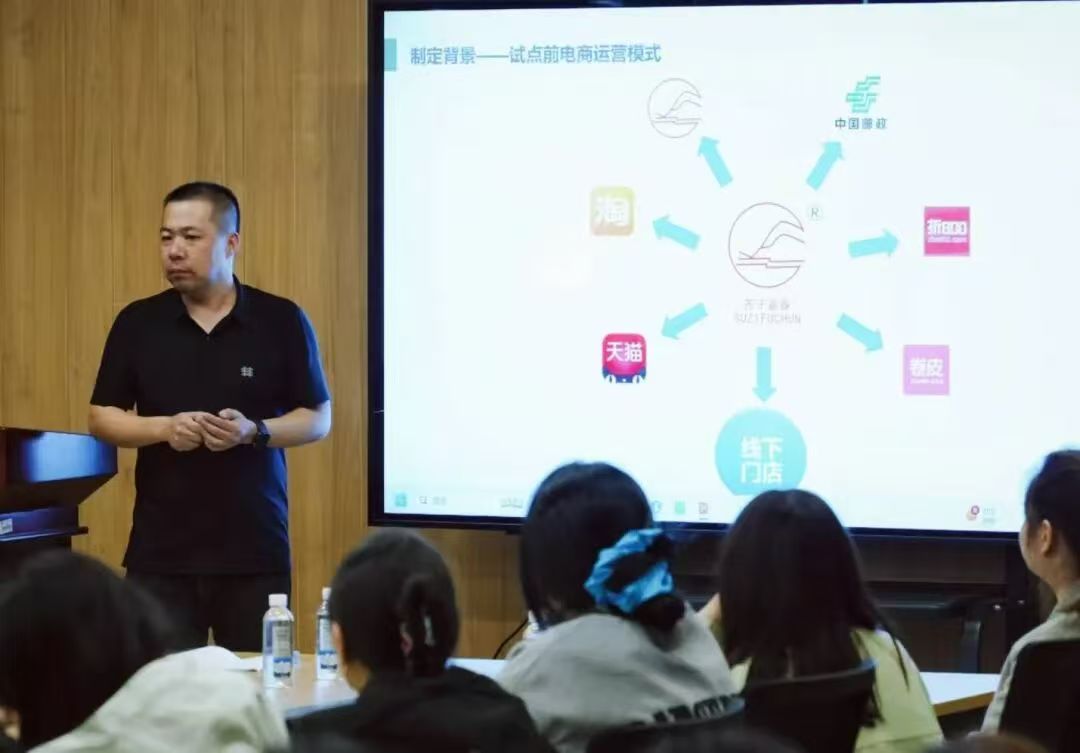 张博老师以《百公里县域农产品电子商务案例》为主题,结合抚顺市富春农业科技开发有限公司的成功实践,围绕“百公里”服务直径的县域电商模式,分享“六统一”标准化管理经验,为学生提供了县域电子商务领域的实战经验与系统性指导 。