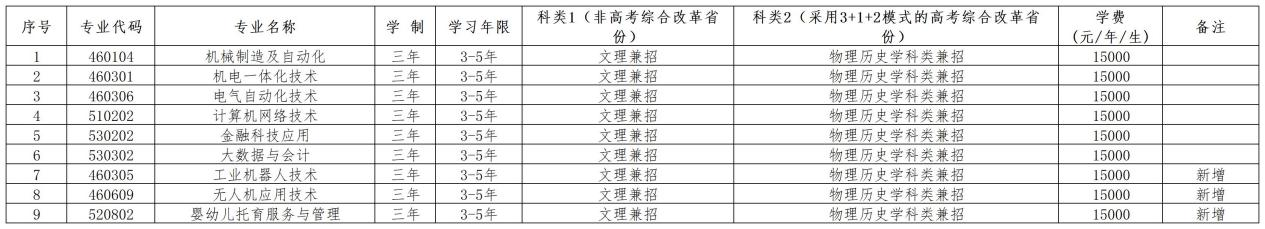 专科专业学费:15000元/人·年;